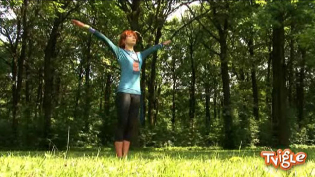 Инструктор Маруся показывает асану, помогающую достичь благости мыслей.